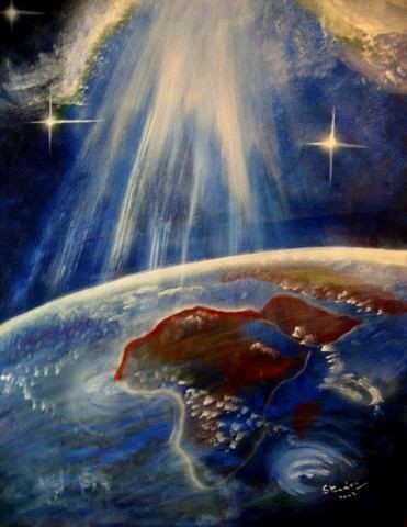 Les tourbillons présents dans beaucoup de mes oeuvres permettent de s'élever haut...très haut pour se détacher des soucis quotidiens, pour aller vers les étoiles, et au-delà, à la rencontre du Créateur de toutes choses.